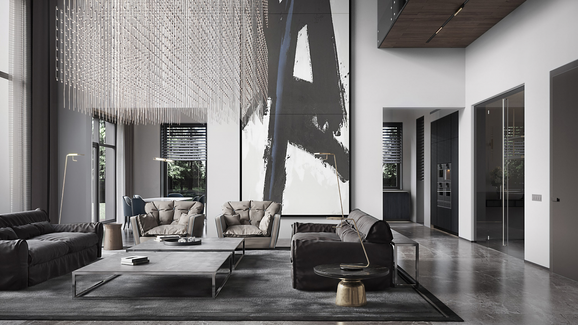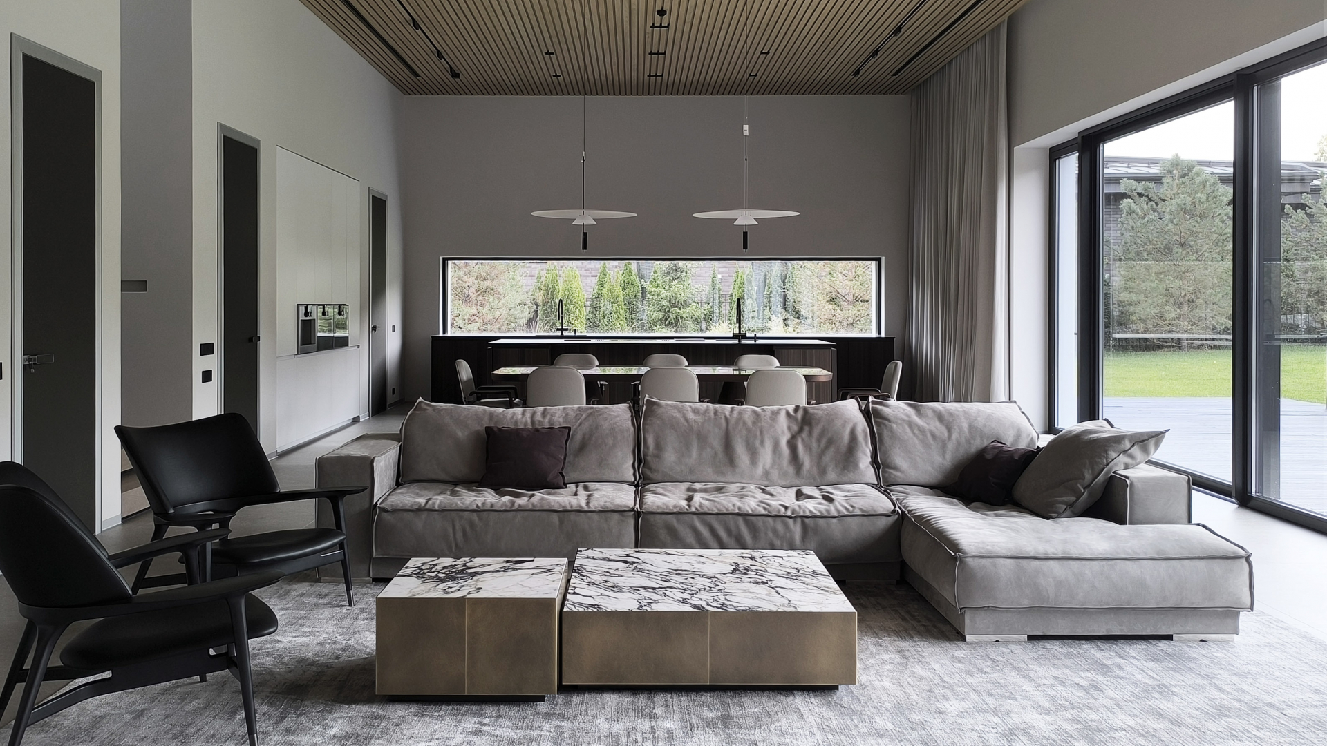 We are not afraid of sharp corners and do not soften them if the “picture” does not require it. But we try to make it so that being at home one feels the warmth of natural wood, the light coolness and the smell of genuine leather. There was a crack of firewood in the fireplace, and the warm sound of stereo.